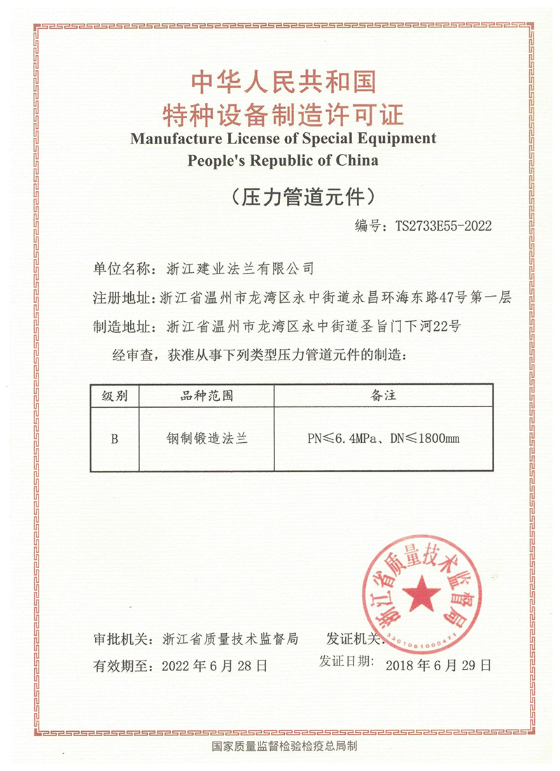 浙江建業(yè)法蘭有限公司,是一家集科研、設(shè)計開發(fā)、制造和經(jīng)營各種管道法蘭等于一體的專業(yè)生產(chǎn)企業(yè),公司以其特有的優(yōu)勢與不懈的努力,在法蘭研制生產(chǎn)的行業(yè)領(lǐng)域中占領(lǐng)了一席之地。公司歷史悠久、實力雄厚、設(shè)備精良、品質(zhì)一流,多年來憑借其雄厚的技術(shù)實力、科學(xué)的經(jīng)營理念、先進的管理模式、過硬的團隊和精良的設(shè)備設(shè)施與卓越的品質(zhì)贏得了市場認(rèn)可和良好的市場聲譽,逐漸發(fā)展成為同行業(yè)的佼佼者。